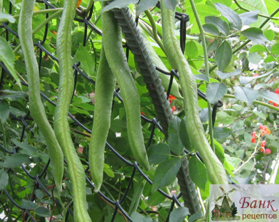 600 г очищенной стручковой фасоли отварите, откиньте на дуршлаг и после стекания жидкости положите в горшочек, смазанный маслом. Взбейте 3 яйца, как для омлета, добавьте 1 ст. ложку муки и 3 ст. ложки молока или сметаны, посолите по вкусу. Этой смесью залейте фасоль и запеките ее в духовке, пока не загустеет омлет. При подаче посыпьте зеленью. Приятного аппетита!